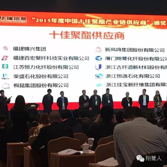 3月24日,聚酯行業(yè)“十佳”評(píng)選頒獎(jiǎng)儀式在“第十五屆中國(guó)杭州化纖論壇”上舉行,廈門翔鷺化纖股份有限公司榮獲“2015十佳聚酯產(chǎn)業(yè)鏈供應(yīng)商-十佳聚酯工廠”稱號(hào),原料采購(gòu)部尾川有康代表我司上臺(tái)領(lǐng)獎(jiǎng)。
