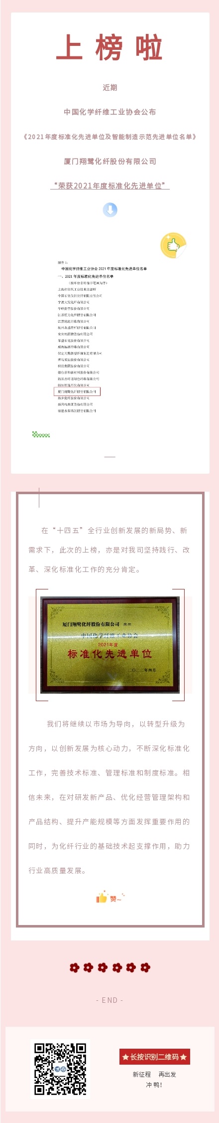 翔鷺化纖榮獲2021年度中國化學(xué)纖維工業(yè)協(xié)會標(biāo)準(zhǔn)化先進單位
