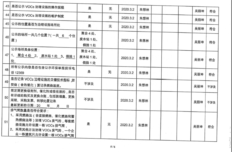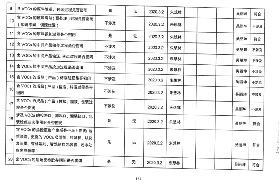 廈門市揮發(fā)性有機物污染防治企業(yè)自查表(2020年第一季度)